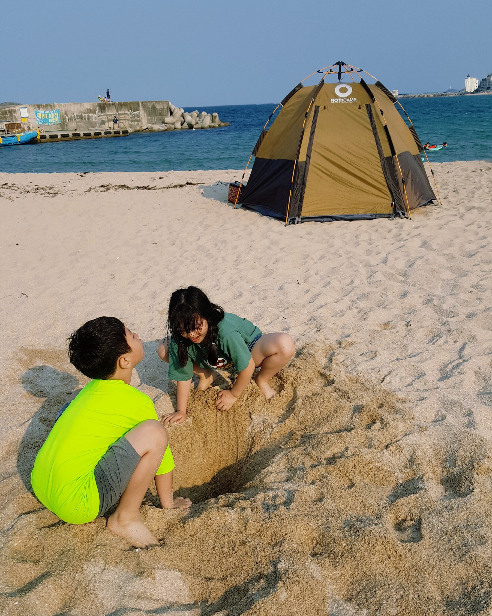 이후 바람쐬러 바닷가 가면 저리 땅을 파고 놉니다...ㅎㅎㅎ
