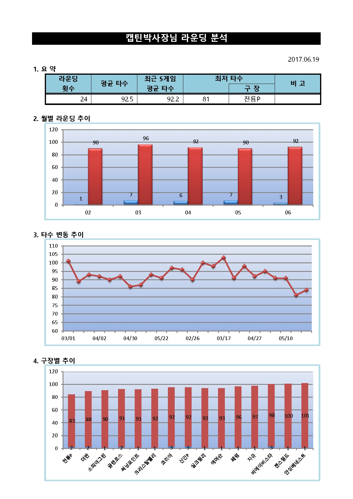 오늘 받은 올시즌 골프 성적표 공개(용기내어봅니다) > 골프포럼