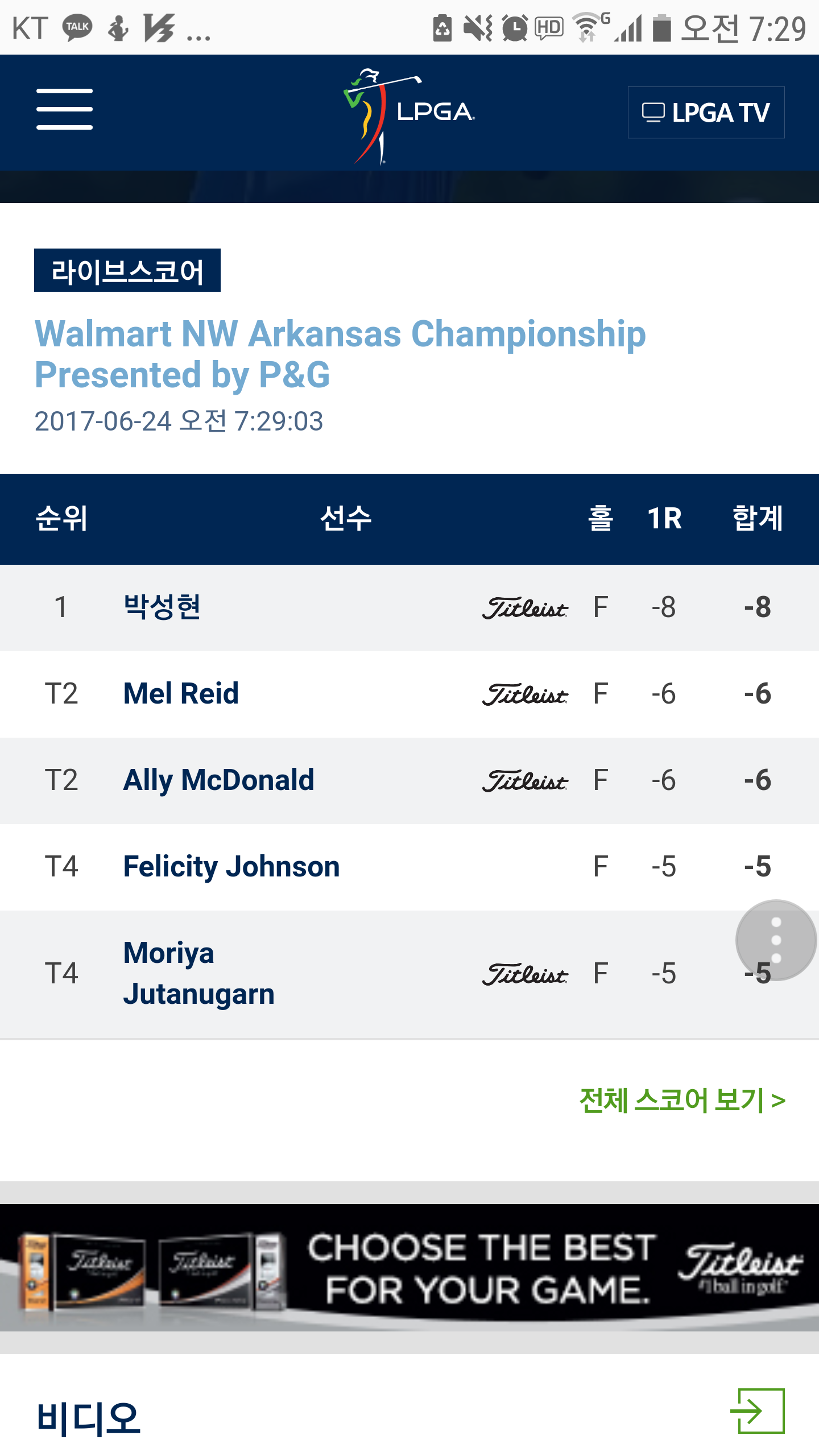 유소연은 6언더네요 ㅎㅎ | ||