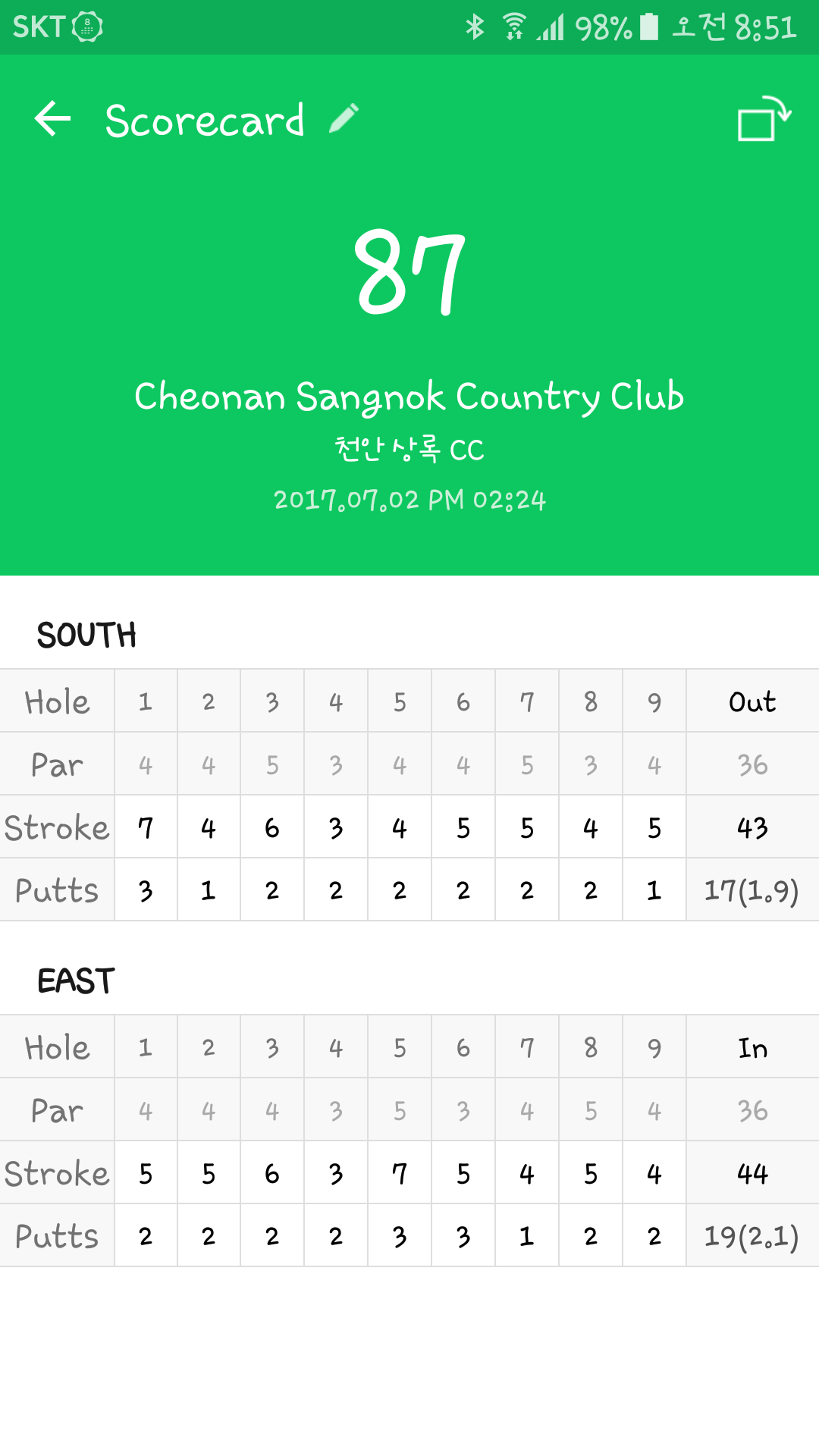 후반 3홀쯤에 비 내렸는데 다행이 쏟아지지는 않아서 크게 지장은 없었어요~~ | ||