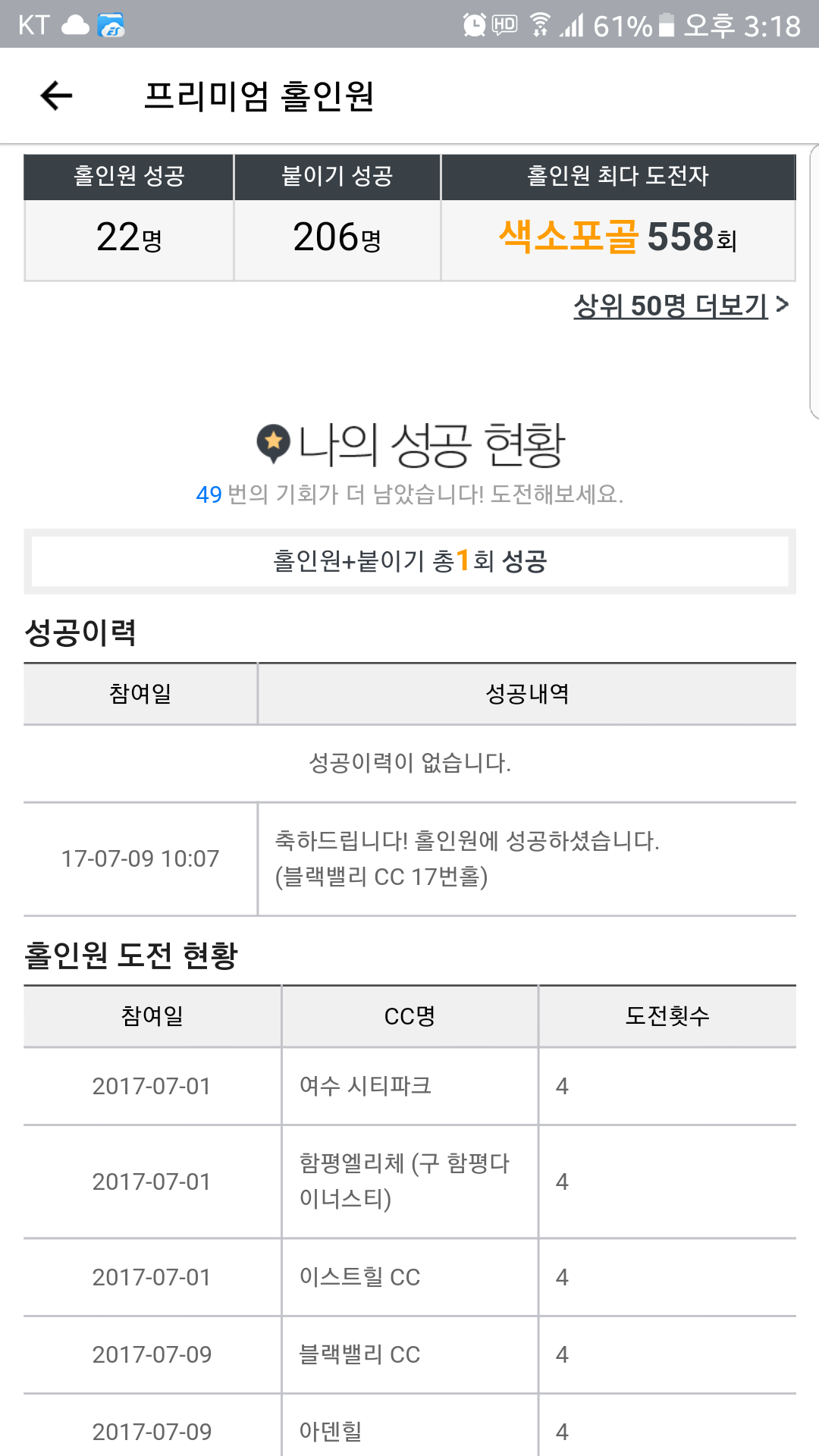 또 홀인원 나오네요 ㄷㄷㄷ