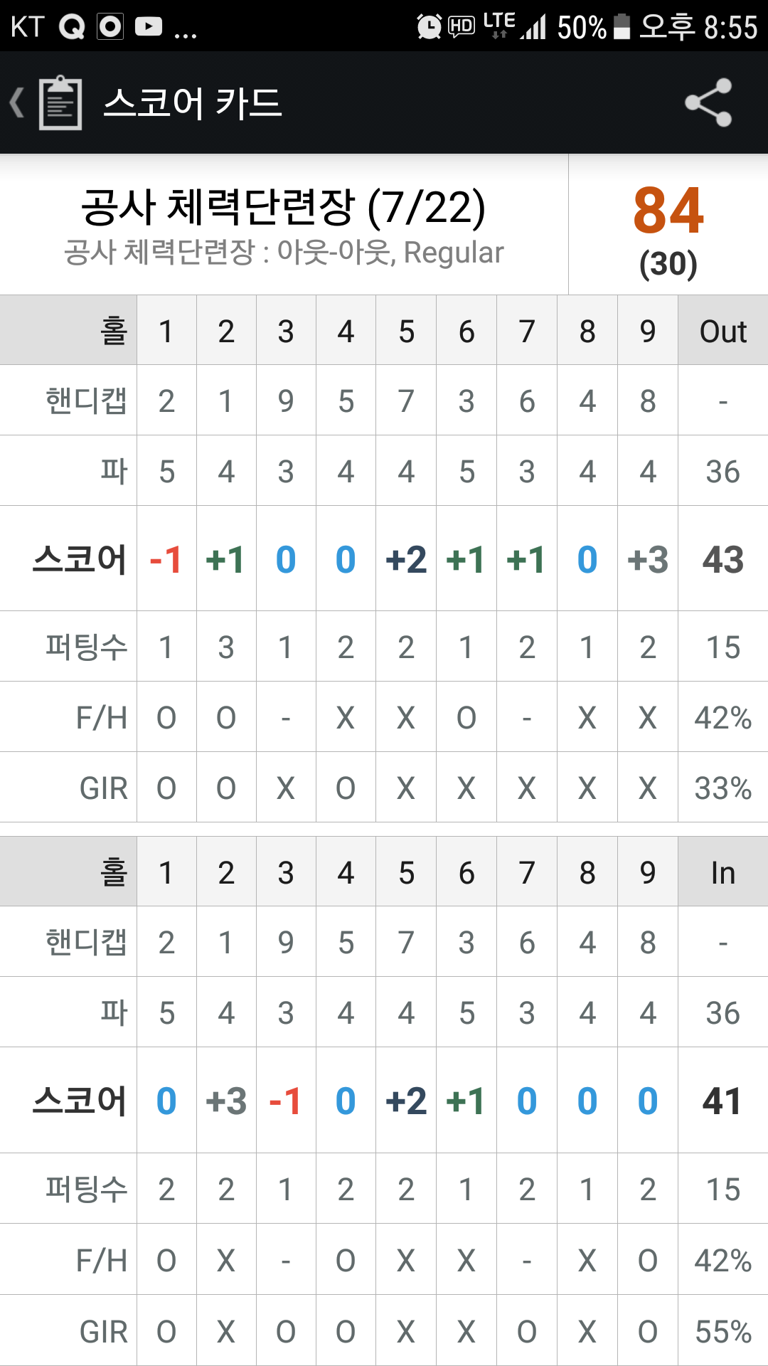 ps1 : 공사골프장에서는 오비만 안했어도... 이븐 칠뻔했네요.... 버디2개에 오비버디 2개....