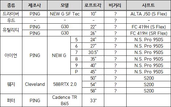 전 3번 우드, 19도 22도 유틸 구성인데