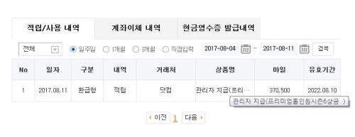 마일리지로 지급되는건 전부터 알고 있었는데 이게 계좌이체가 되는 마일리지네요.