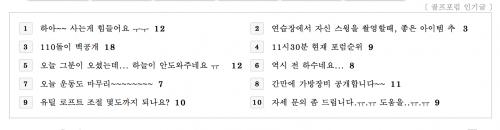 게시판 리스트가 보이는 가장 하단으로 스크롤을 내려보면 우리 골포만의 인기글이 리스트로 올라옵니다.