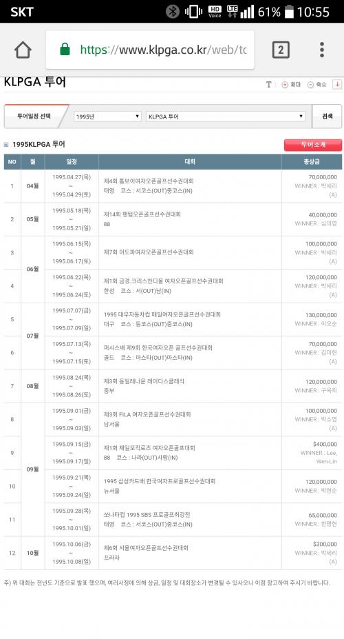 1995년 KLPGA 정규투어 다승은 박세리(당시 아마추어)가 유일.