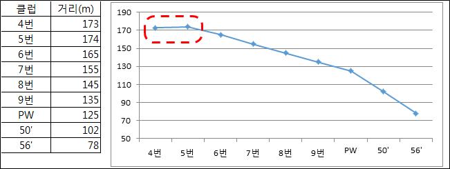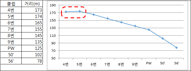 GDR서 체크해보니, 정타확률이 떨어지기 시작하는 5번, 4번 아이언은 비거리 역전현상이 나타나고 좌우편차도 커지더라고요.