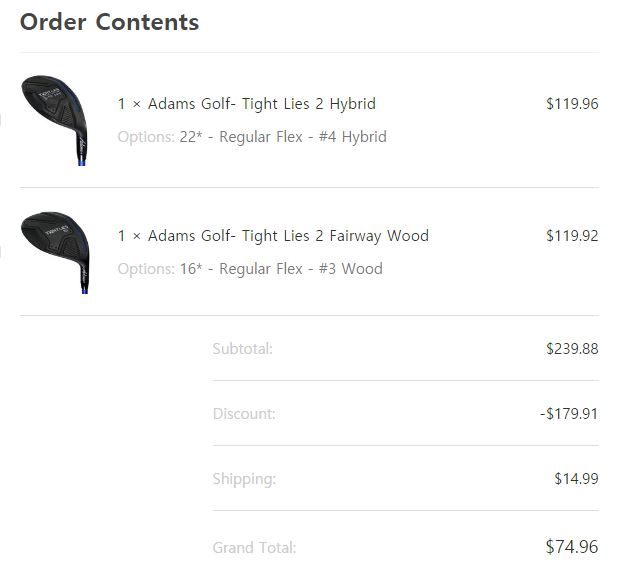 어제 5번우드, 3번 유틸 2개 합배송해서 항공운송료 13달러 나왔습니다. 참고하세요. |
