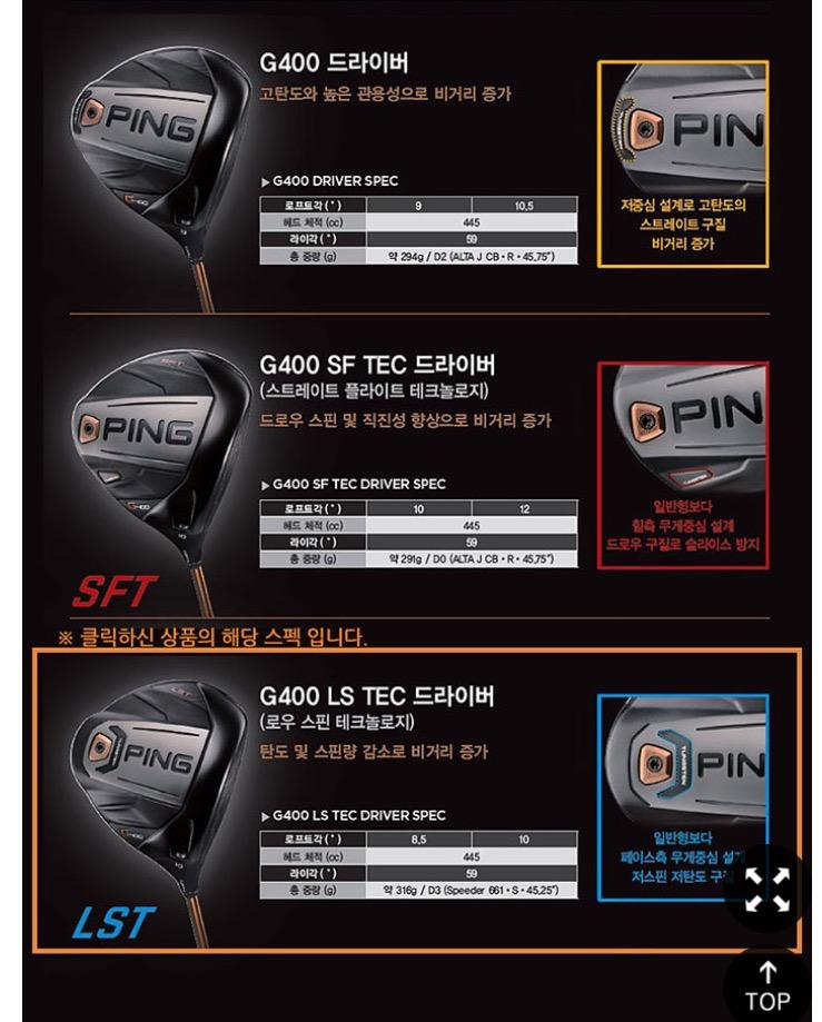 일단 제가 시타해본건 레귤러 버젼과 SFT뿐이었습니다. 뭐 LST자체가 상급자용으로 나왔다는 생각에 거들떠도 보지 않긴 했습니다만, 만약 G400을 살거라면 모든 모델을 다 시타해보고 가장 맞는것을 사는게 옳지 않나 하는 생각에 근처 골프샾들을 수소문해봤습니다만 시타채가 다들 없다고 하네요.