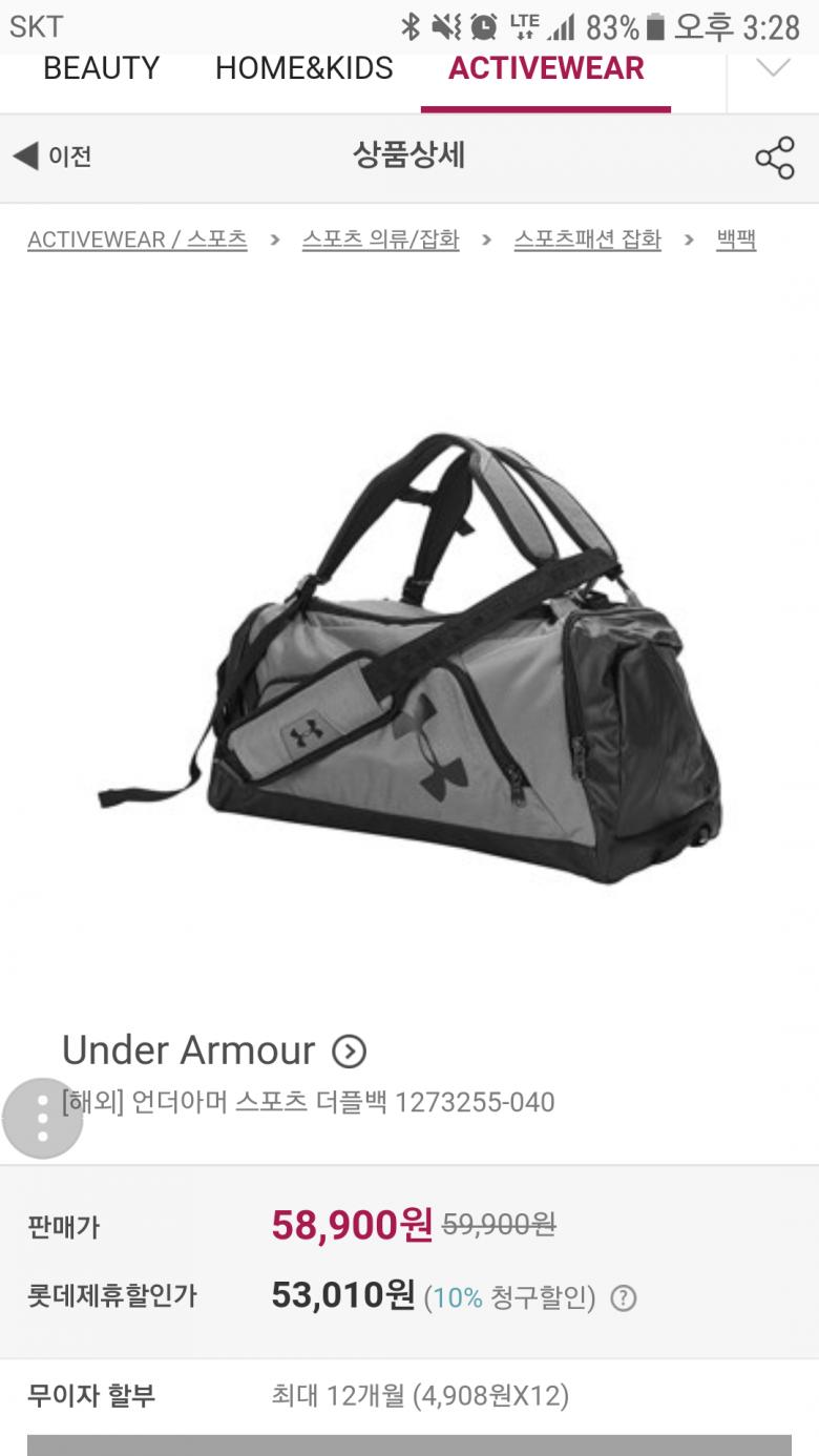 언더아머 더플백 추천드립니다. 여행용, 운동용, 라운딩용으로 두루두루 사용 가능할거 같아요.
