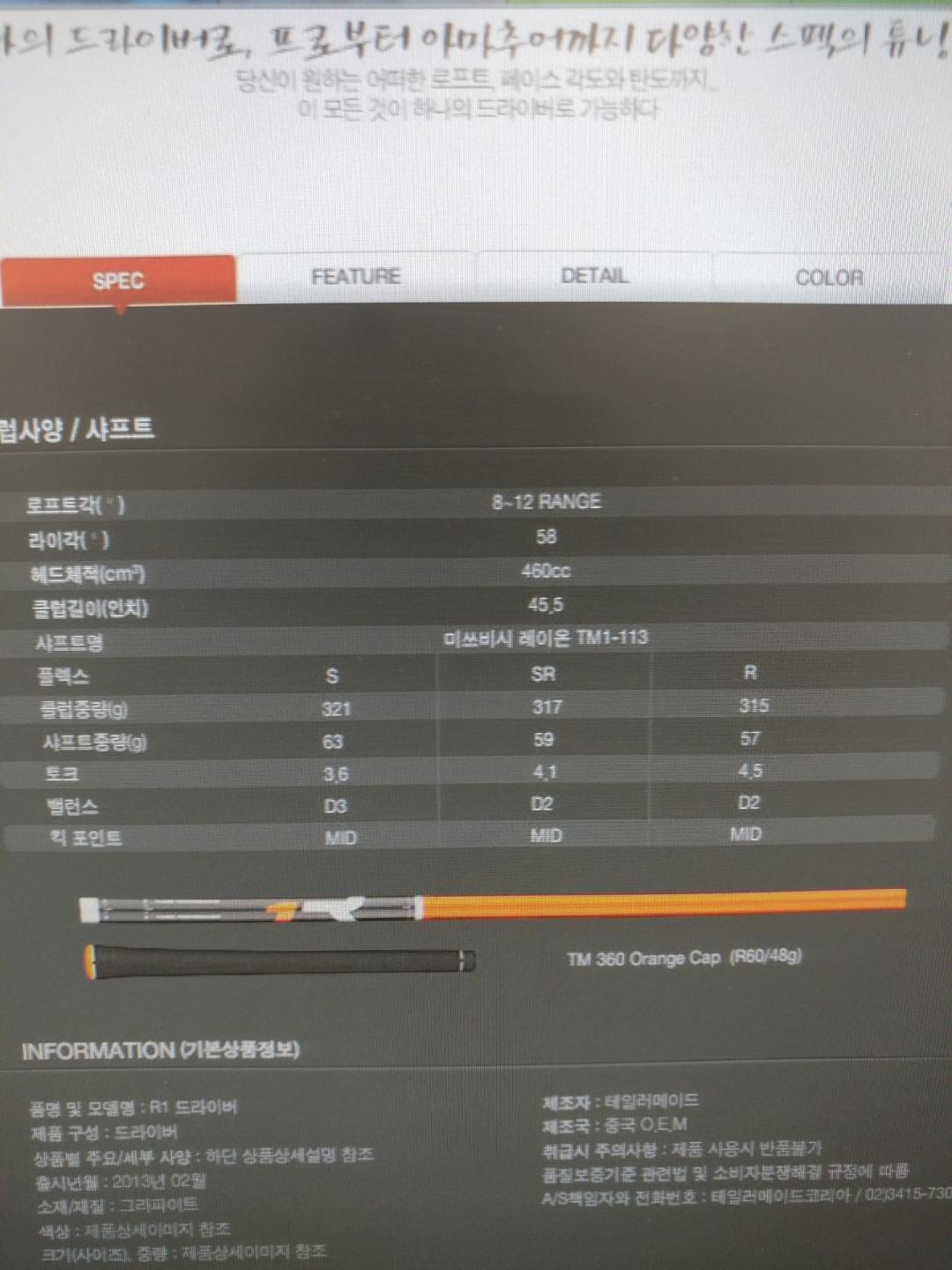 테일러메이드 R1 드라이버는 아시안버전으로 나온 제품이 SR플렉스 기준 CPM이 어지간한