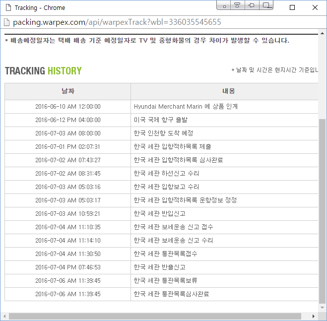 통관목록 보류와 통관목록 심사완료가 같은 시각이네요.
