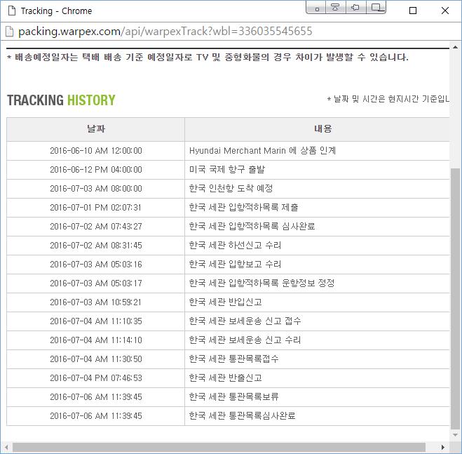 H B/L에 송장번호 넣어서 보시면 좀더 자세한 진행 상황을 알 수 있습니다.