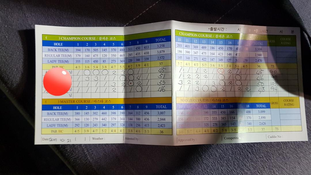 어제 89개를! 마지막홀 파를 보기로 적으셨네요.