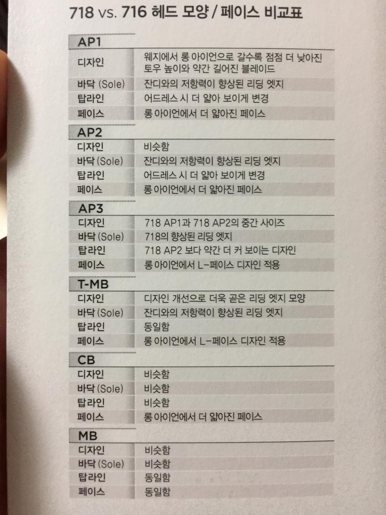 사실 AP2가 넘 이뻐보여서 피팅때 그냥 무조건 AP2로 할거라는 제 주장을 적극 반영(?)하여 담당피터분이 대충 그쪽으로 결과를 만들어주신거 같았구요, 5번은 조금 들쭉날쭉하다고 하니 약간 드라이빙 아이언처럼 T-MB 써보는 것도 괜찮을 것 같다고 하셔서 T-MB는 5번에만 적용했구요.