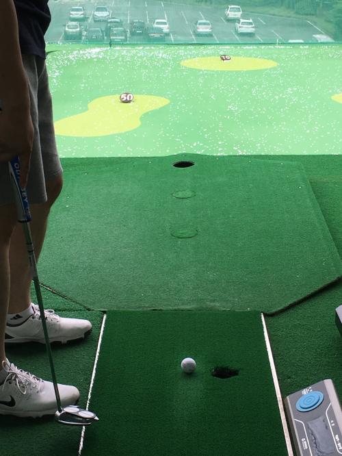 색다른 건 저기 보이는 퍼팅 판에 구명 3개가 있는데 남은 거리별로 알아서 열리고..