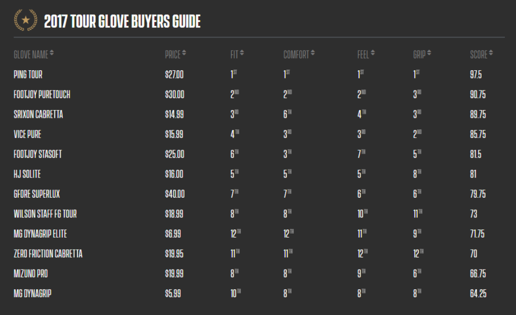 영어 기사 원본: 2017 Premium Golf Glove buyers guide