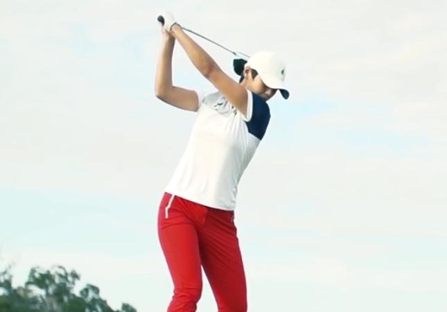 하지만 그립끝을 손바닥으로 눌러준다고 생각하면서 코킹을 하면 여전히 손바닥과 새끼손가락쪽에 힘이 들어가서 안정적인 백스윙탑과 그립은 견고하나 유연한 손목의 상태가 됩니다.