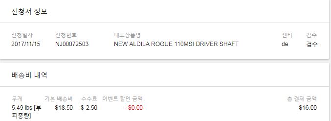 그러나, 고배송은 샤프트만 16불이네요. ㅎㅎ