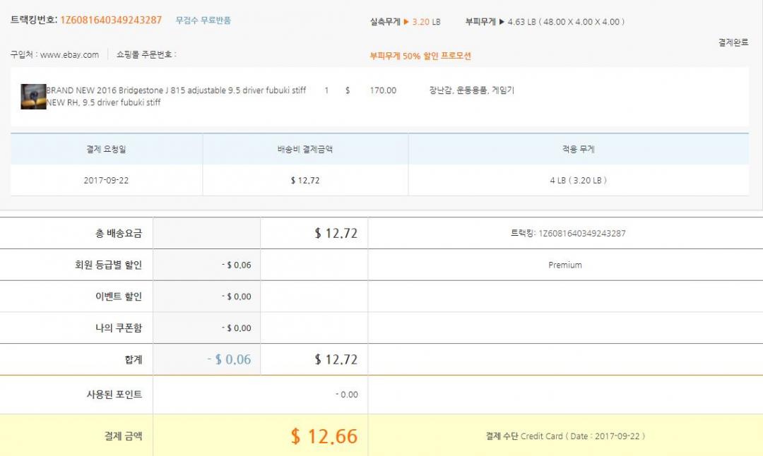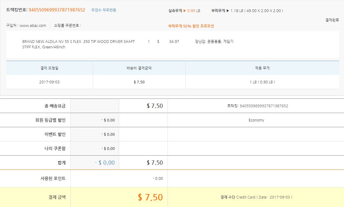 이베이에서 몇번 샤프트를 구매해서 배대지 거쳐 받은 경험이 있습니다만 이렇게 어이없는 배송비 책정은 첨이네요.