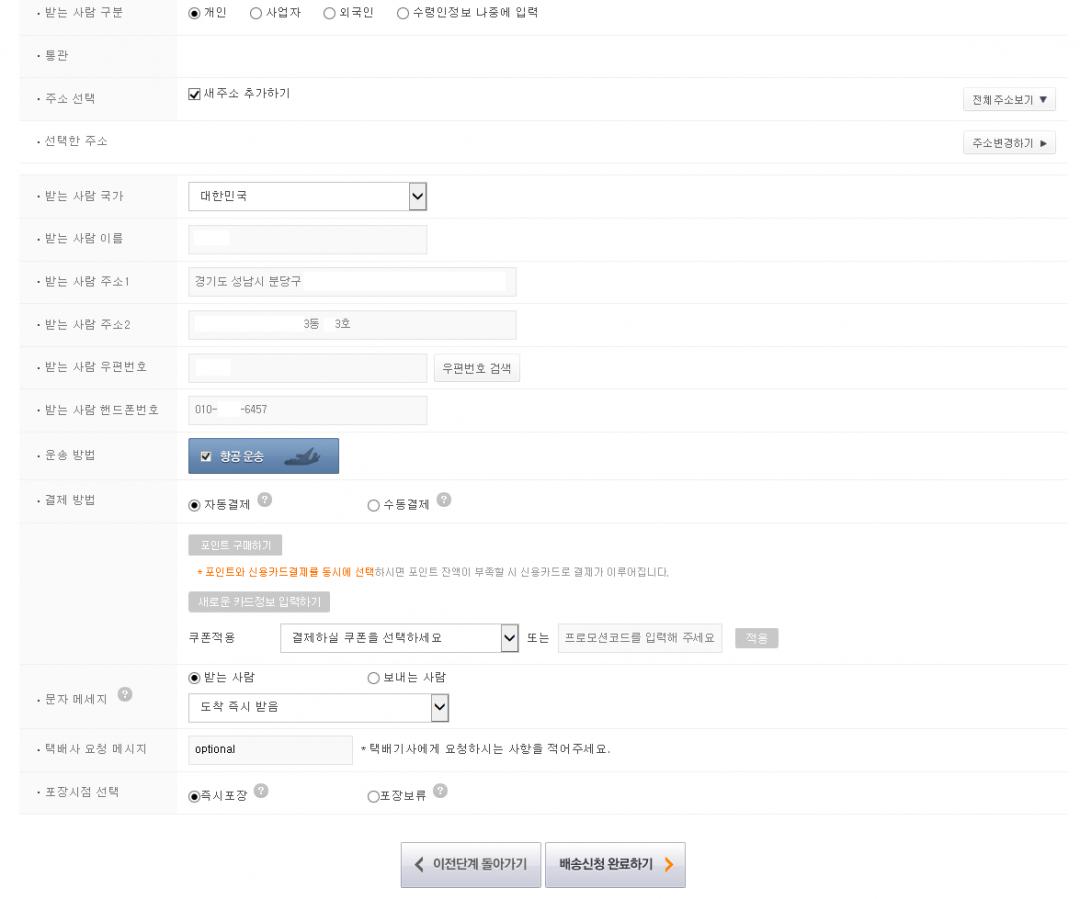 3. 그리고 마지막으로... 수령인정보 넣을때요...