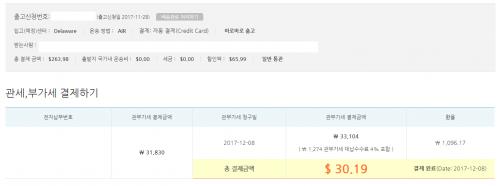 축하드립니다. 관세없이 부가세만 당첨되셨네요.