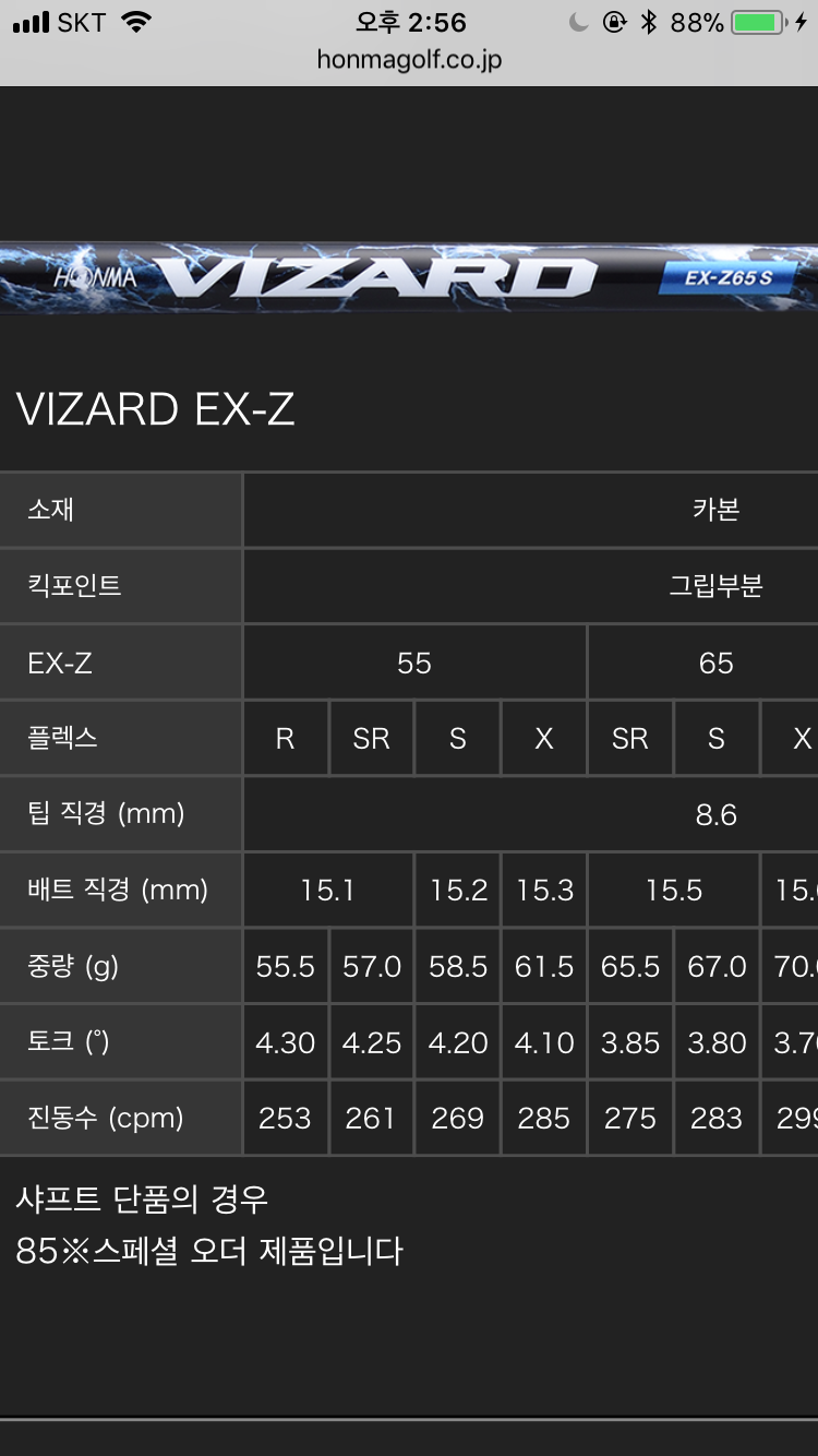 비자드 ex-z 65s 샤프트인데, 이게 혼마에서만 있는 샤프트인것 같더라구요~