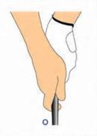 3)손등쪽으로 펴짐extension된 상태로 그립에 붙어야 한다는 포인트를 강조한 게 아래 그림입니다.