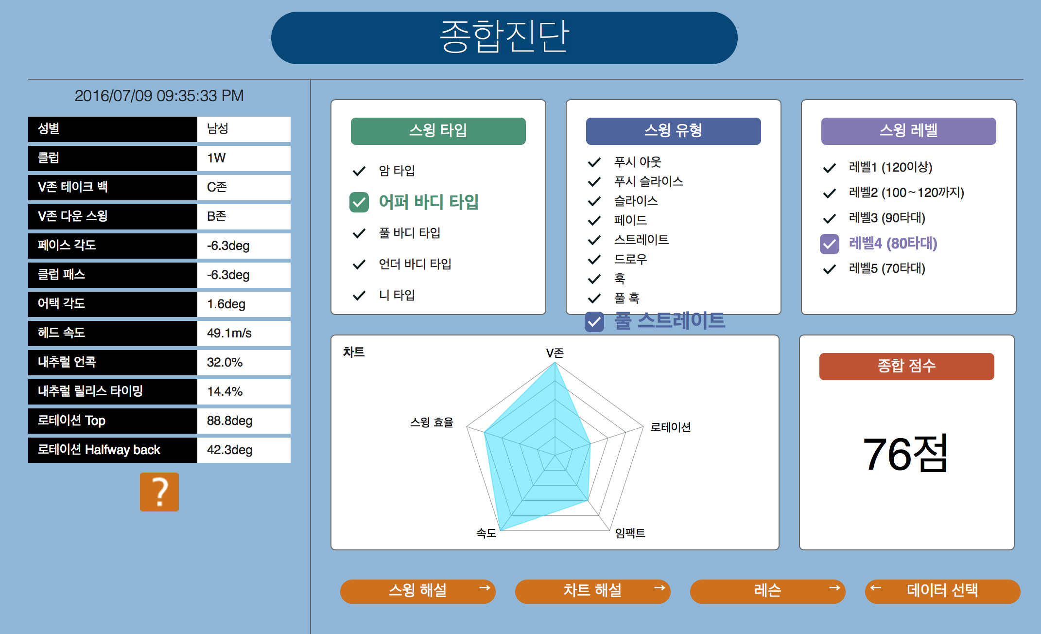 스윙톡은 잘 모르겠는데, 엠트레이서는 위의 고민들을 일정부분 해결하는 서비스를 제공하더군요. 즉, 스윙분석에 따른 문제점과 해결방안, 동영상 레슨까지 제공하는 서비스 말입니다.