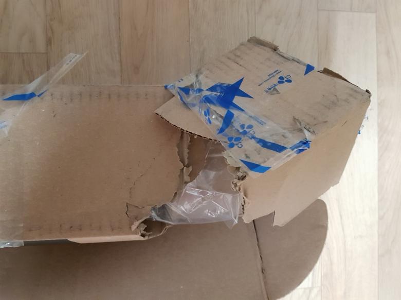 CJ 택배 테이프로 보수 흔적이 있습니다