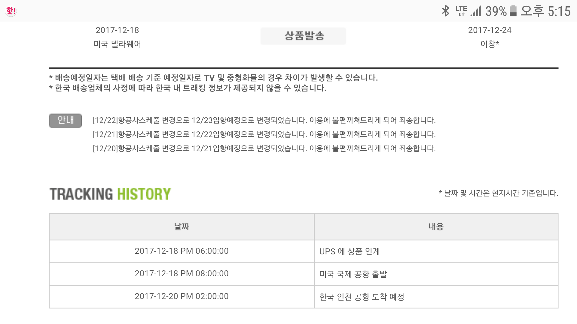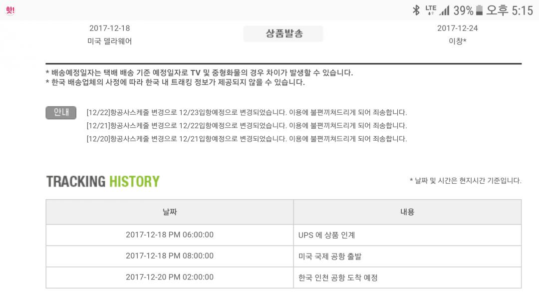UPS에 인계해서 화물기로 오는거 하고 관련이 있는듯 해요