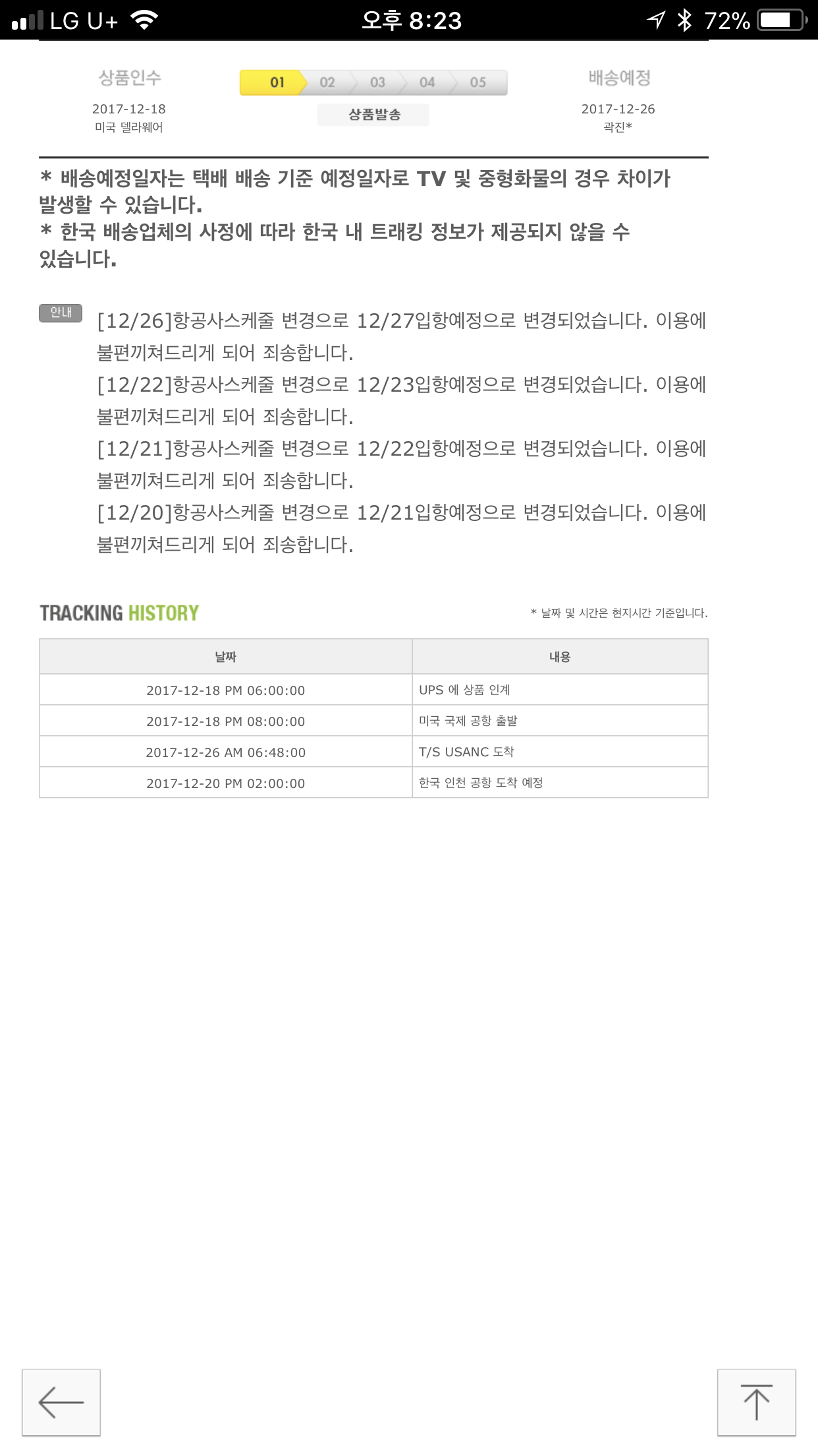 저도 이거때문에 확인해봤는데 같은날 출고된게 하나는 대한항공 하나는 UPS 였는데 둘이 도착한게 2주정도 차이났었습니다 ㅠㅠ
