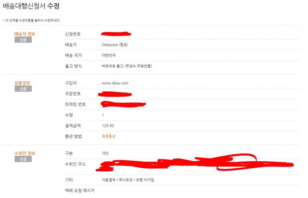 전 4일날 오마집 도착한물건 9일날 입고 잡히고