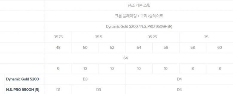 공홈에 보면 50도는 35.5인치, 54,58도는 35.25인치로 0.25인치 차이나는게 스탠다드 길이인 듯 합니다.