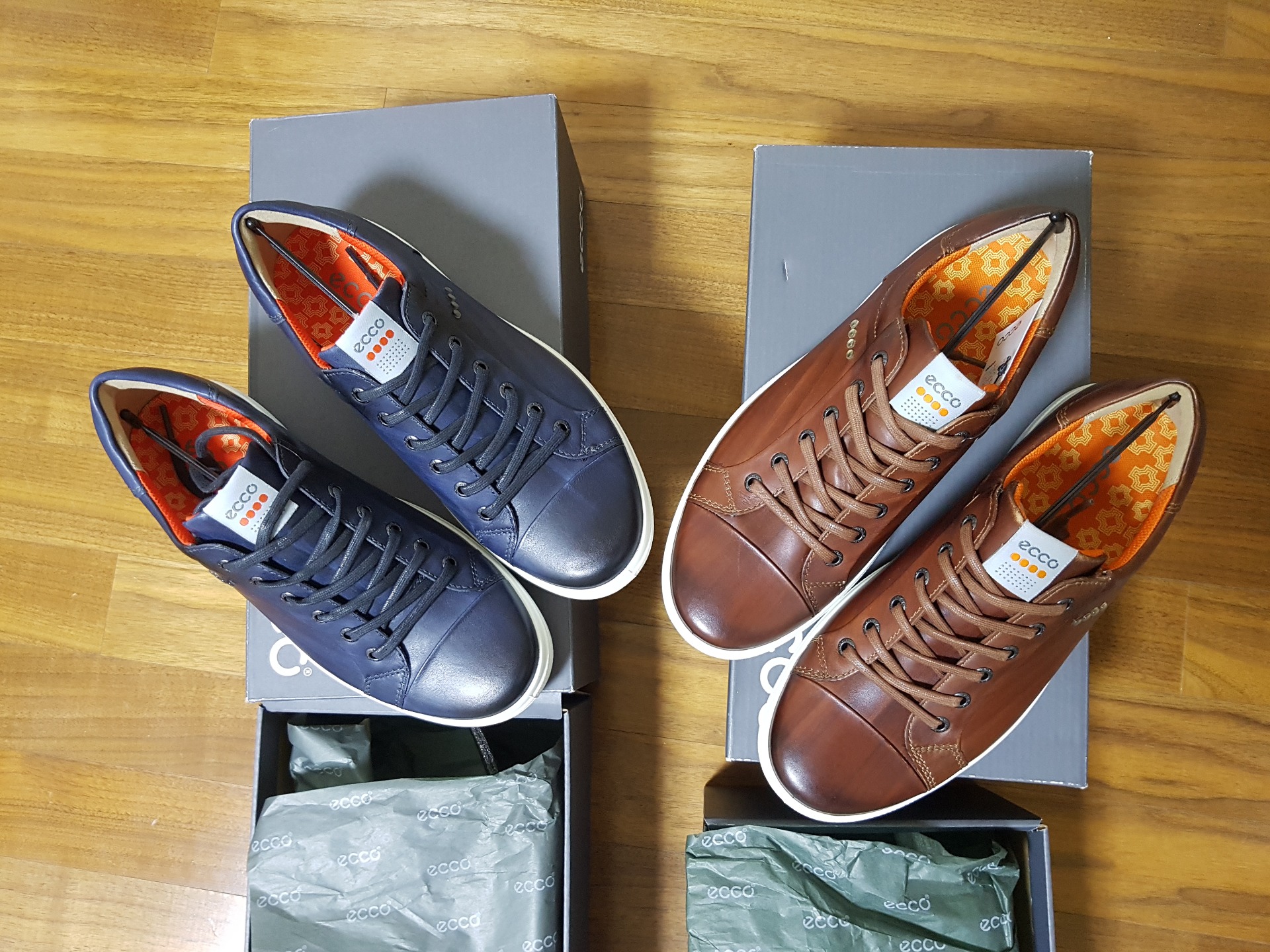 얼마전 이곳에서 한 분이 에코공홈에서 세일+30%세일 한다는 소식듣고 둘러 보다가 2주전에 풋조이 DNA보아를 샀는데 또 골프화 2켤레를 질렀습니다. 발 사이즈가 원래 265신는데 41사이즈가 없어서 40사이즈 주문 했는데 다행히 편안하게 딱 맞네요. 제가 발 볼이 넓은데 이 신발 볼이 딱 입니다. 에코 신발은 첨인데 색과 가죽 질감이 예술 입니다. 신발 하나 가격으로 2켤레를 얻다니 이득 맞겠죠? 작년 말 골포를 처음 알게되서 직구의 참맛을 알고 무한 지름신이 강림 했네요 ㅋ
