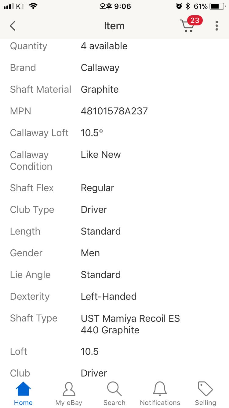 9도 Stiff 모델도 LIKE NEW 가 122달라 인걸보니 117불이 엄청난 실수는 아닌거 같습니다.