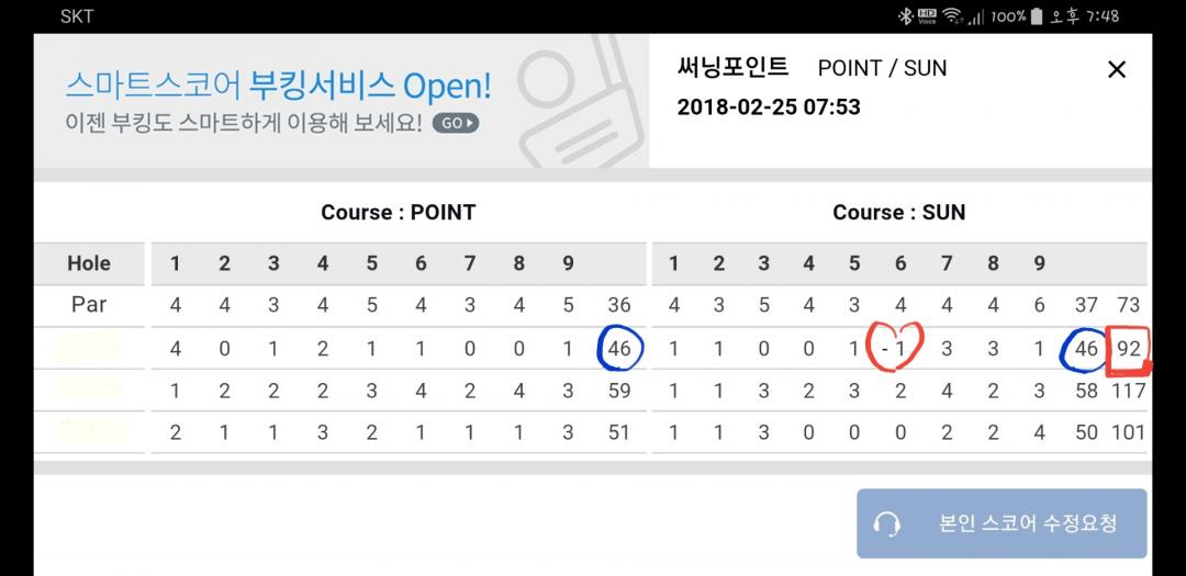제가 라베 기록한 써닝이군요. 코스 적당히 넓고 좋았는데. 첫 홀이 너무 아쉽네요.