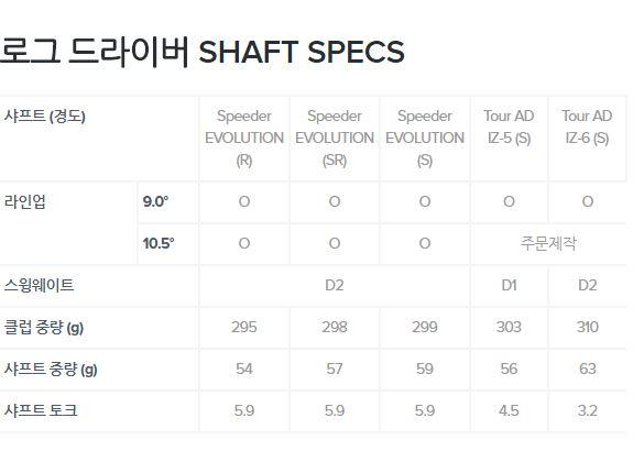 로그 9도 SR플렉스 45.25인치 헤드무게 191g+슬리브무게 약8g포함 200g