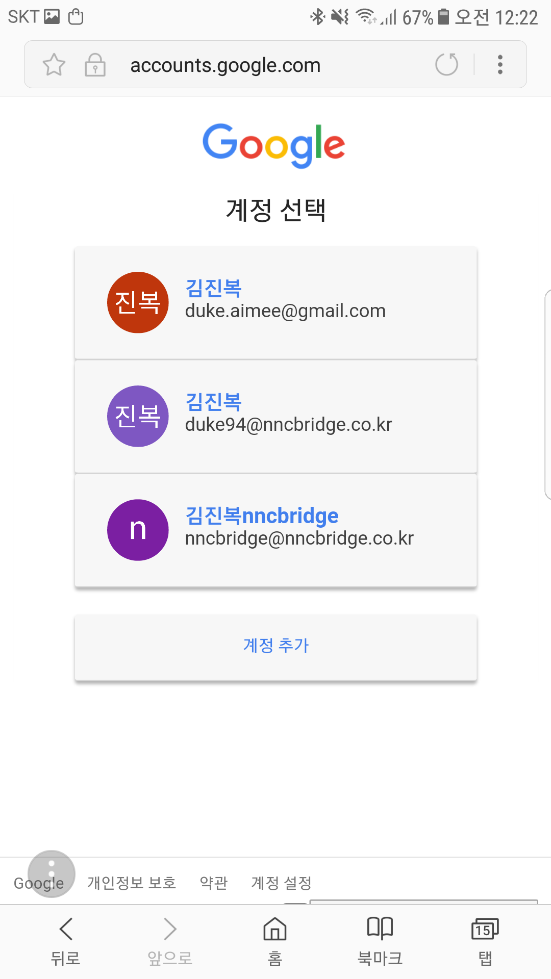 저는 구글계정을 연동해서 사용합니다. 블러 처리를 할까 하였으나 뭐 어차피 오픈된 개인정보 아니겠습니까 후훗..쿨럭