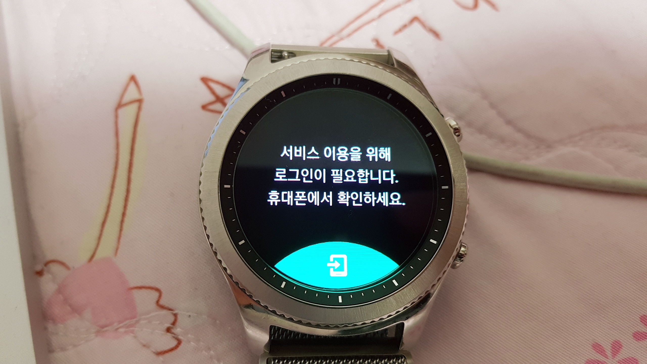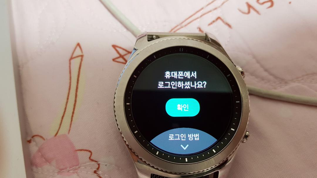 그러면 아래와 같이 화면이 바뀌고 15분 이내에 기어s3에서 확인 버튼을 눌러주셔야합니다.