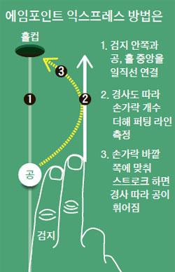 필드 그린에서 고저차를 봤으면 홀컵에서 얼마정도나 떨어져 칠지 결정을 해야 하잔아요?