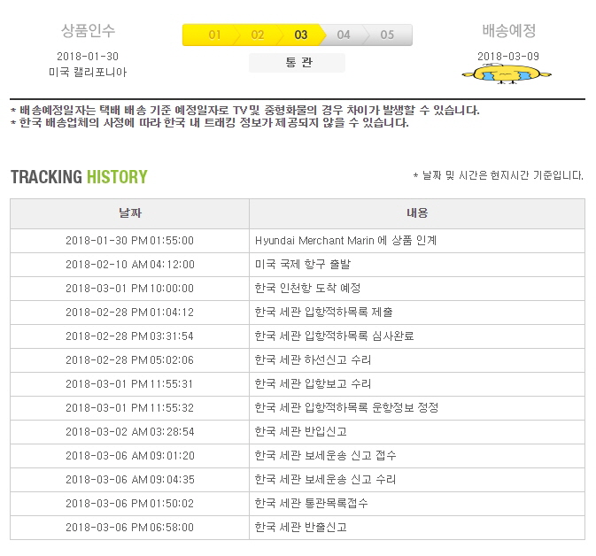 배 도착은 2월 28일로 나오는데 아직까지 통관중으로 나오네요.
