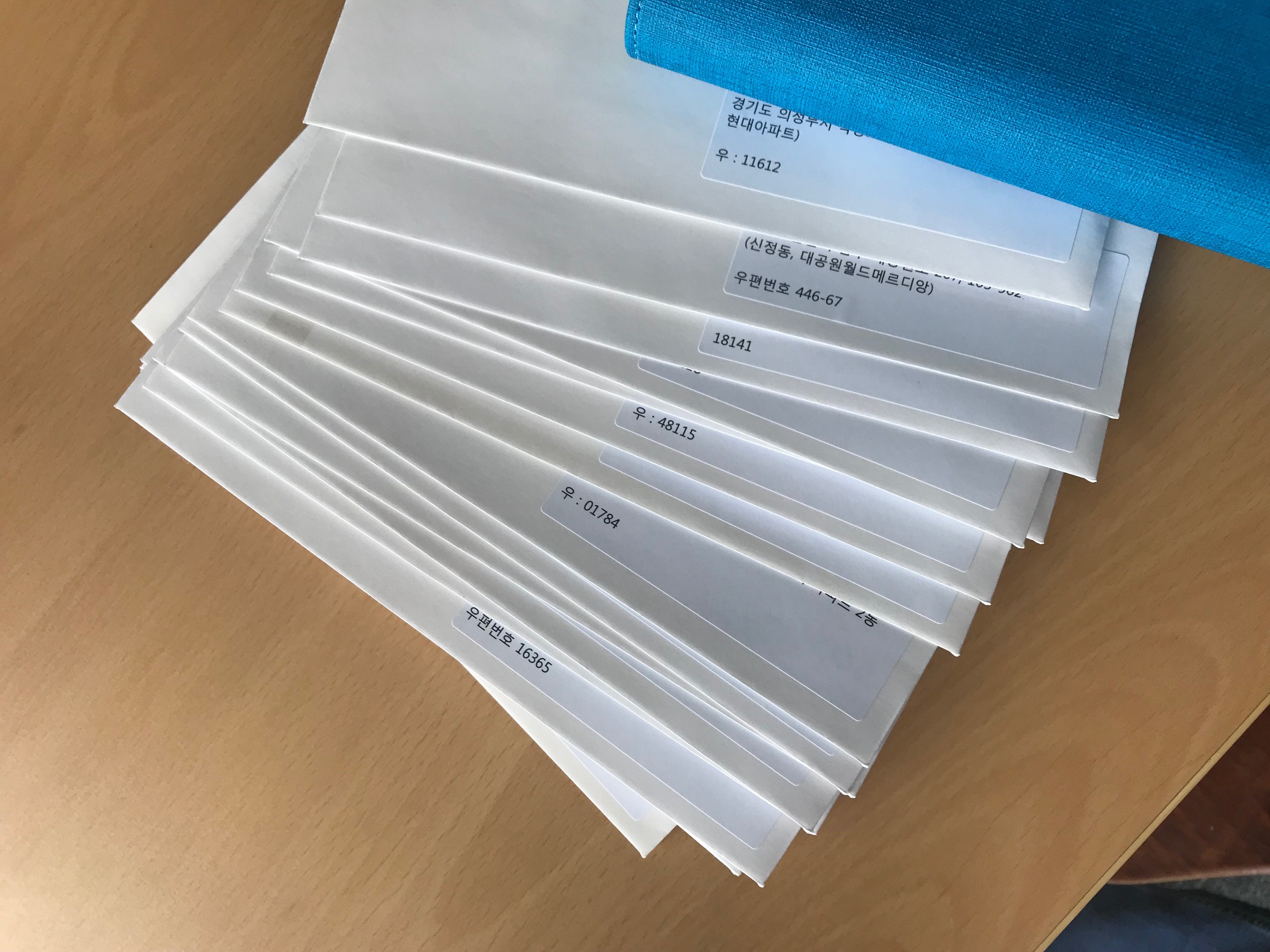 미리 만들어 놓은 봉투에 넣어 회원님들 집으로 우편을 통해 보내드렸습니다. 우편무인화 창구로요~