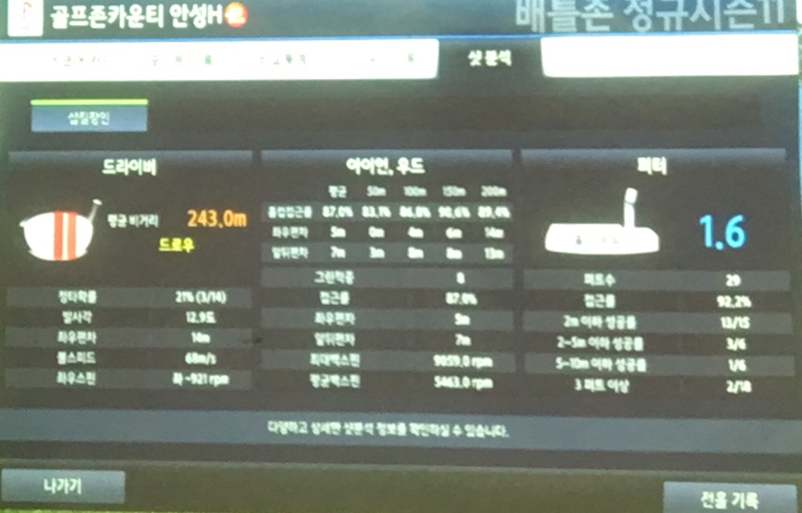 비거리 확인은 꼭.... 긴 인도어 장으로 가셔서 확인을 해보세요..