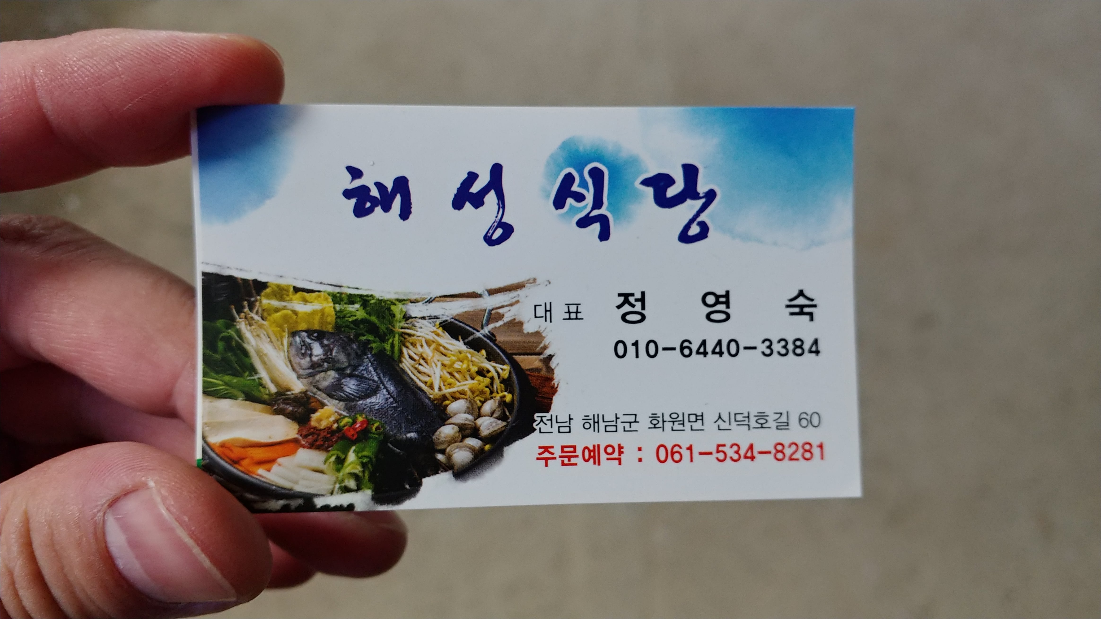 저녁 식사는 해성 식당에서 먹었는데 여기 강추합니다. 사시미와 우럭매운탕을 부탁드리고 예약을 했는데 남도 정식도 아닌 것이 정식인 것 같이 정말정말 최고였습니다. 꼭 가보세요. (골프장에서 택시타면 되고 현금 12,000원 입니다.)