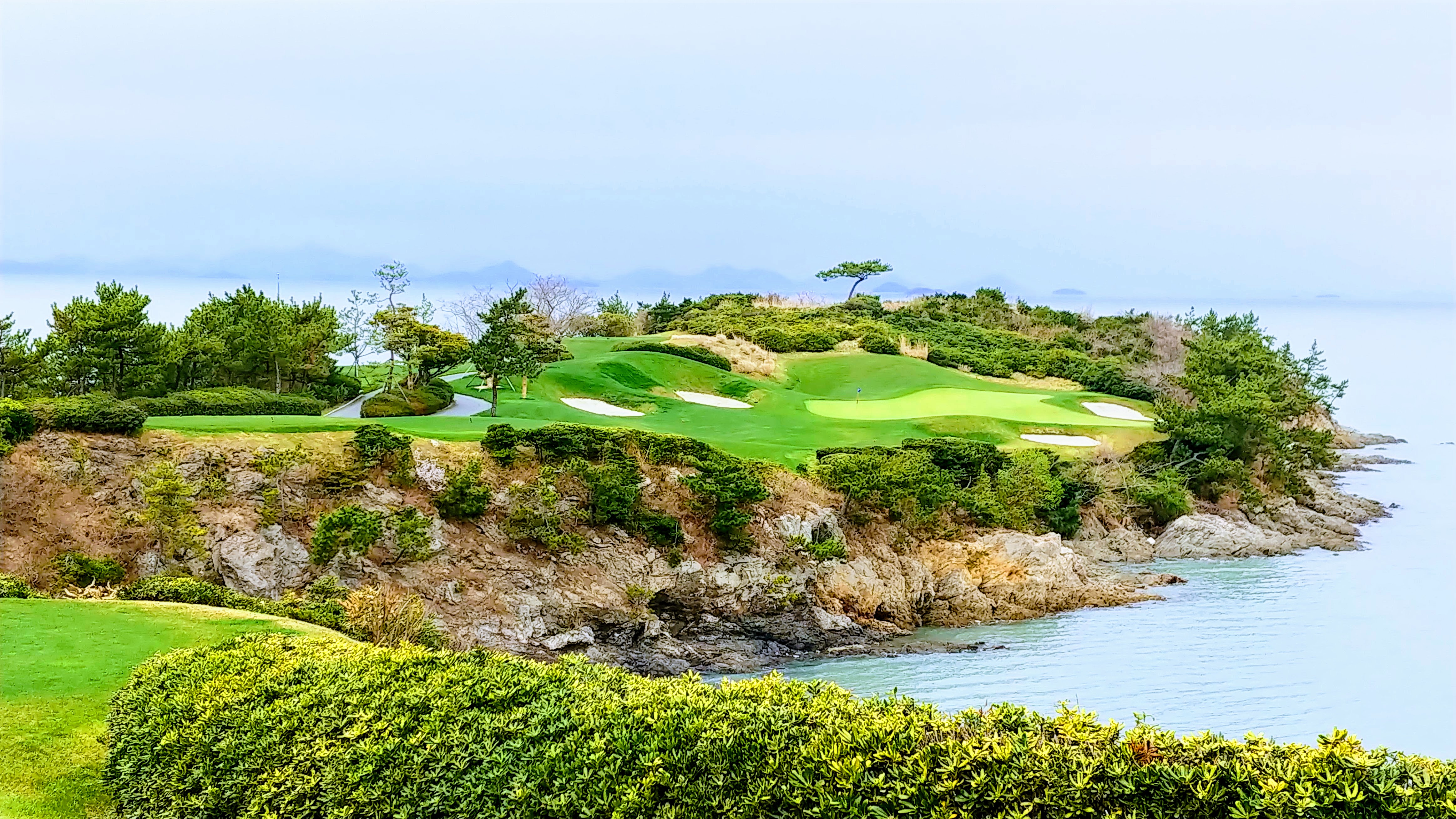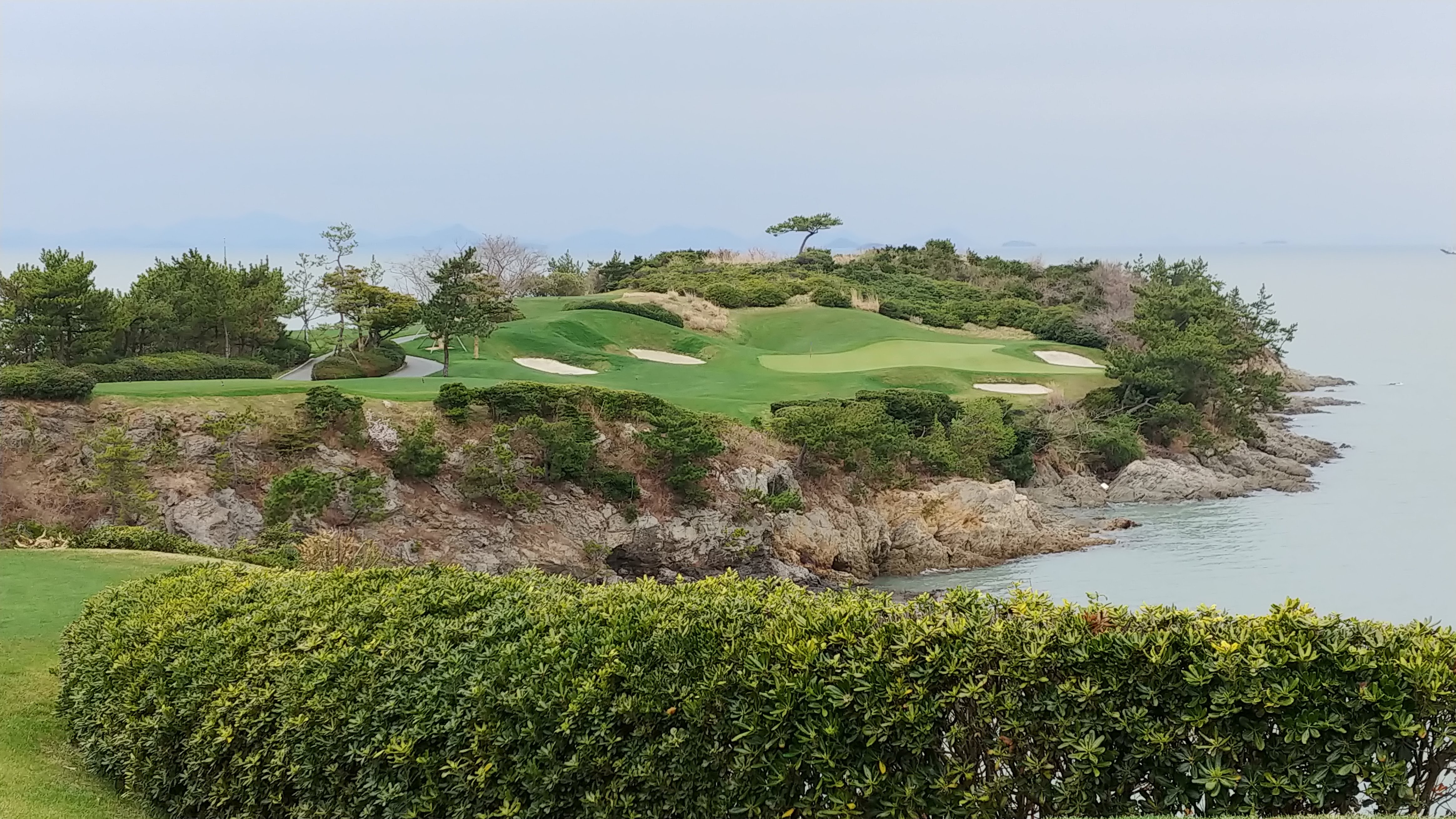 그린이 좀 어렵고 절벽 사이로 티샷 캐리로 210을 넘겨야 하는데 미친듯한 맞바람으로 250은 보고 쳐야 하는 홀도 있었고, 여튼 멋진 코스의 연속이었습니다. 그냥 걷고 있으면 마음이 상쾌해지는 그런 기분이었지요.