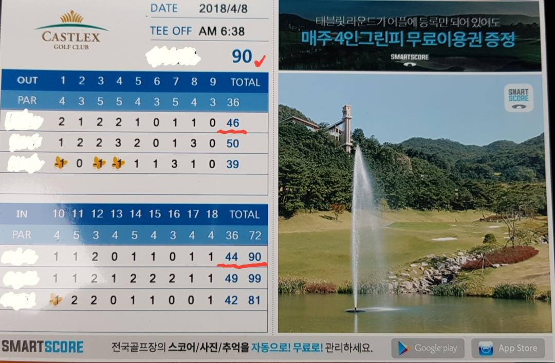 버디기회를 4번이나 놓쳐서 핑계를 하자면 캐슬렉스 그린상태가 거의 개판수준입니다. 거의 대부분이 수리지상태입니다.