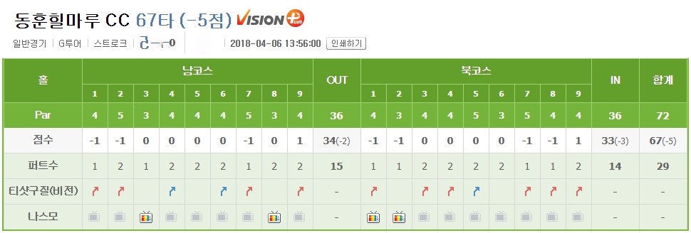 골프를 치시고 10개월 만에 언더를 치다니... 대단하십니다. |