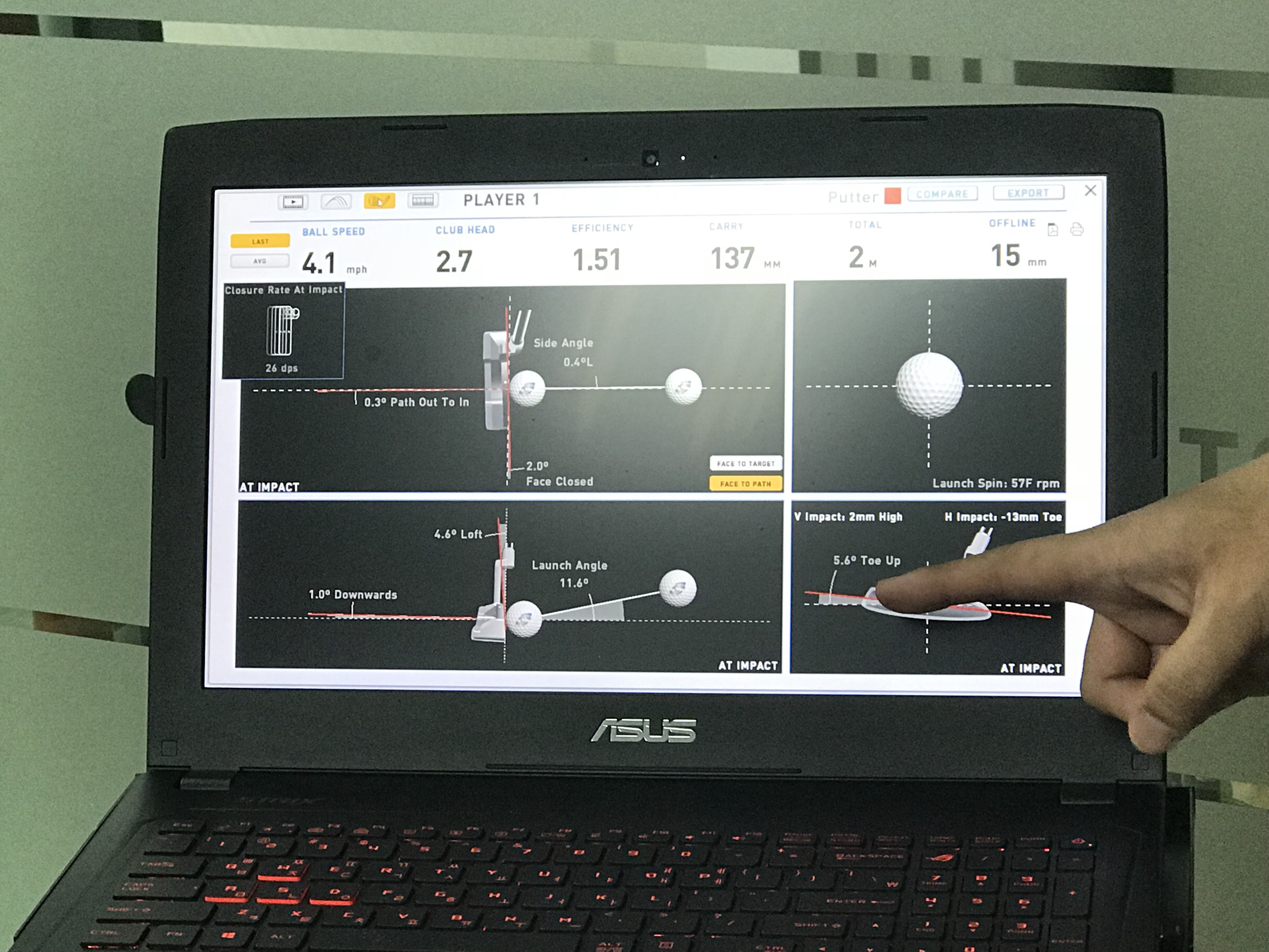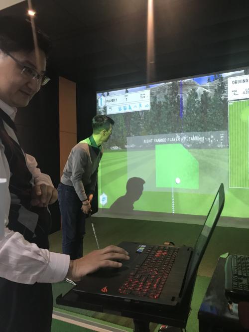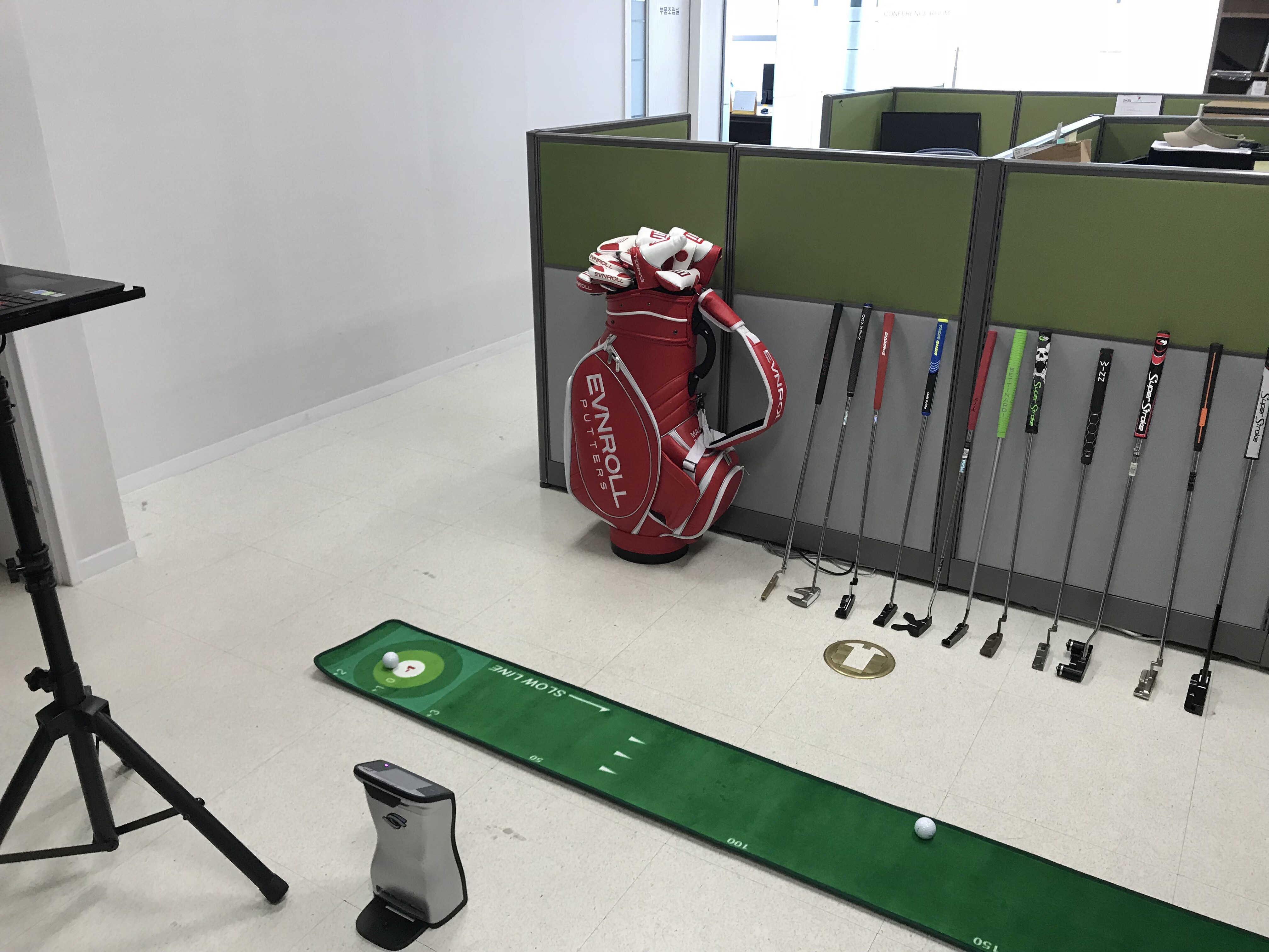 부사장님께서 친절히 설명 해주셨는데 벌써 치매가 시작될까말까하는 나이라 많이 까먹은 듯! 어쨋든 시장에서 가장 정확한 퍼팅 분석 시스템으로, 아마추어들이 특히 주의해야하는 상황은 스트로크 시 개인이 주로하는 head path, skid (미끄러져 가는 거리), launch (공을 시작할때 튀는지), time to roll(얼마만큼 나아가서 앞으로 구르기 시작 하는지 등등.. 생각보다 많았지만 단순하게 똑바로, 그리고 가능한 skid가 적게, 그리고 빠르게 앞으로 구르기에 집중.