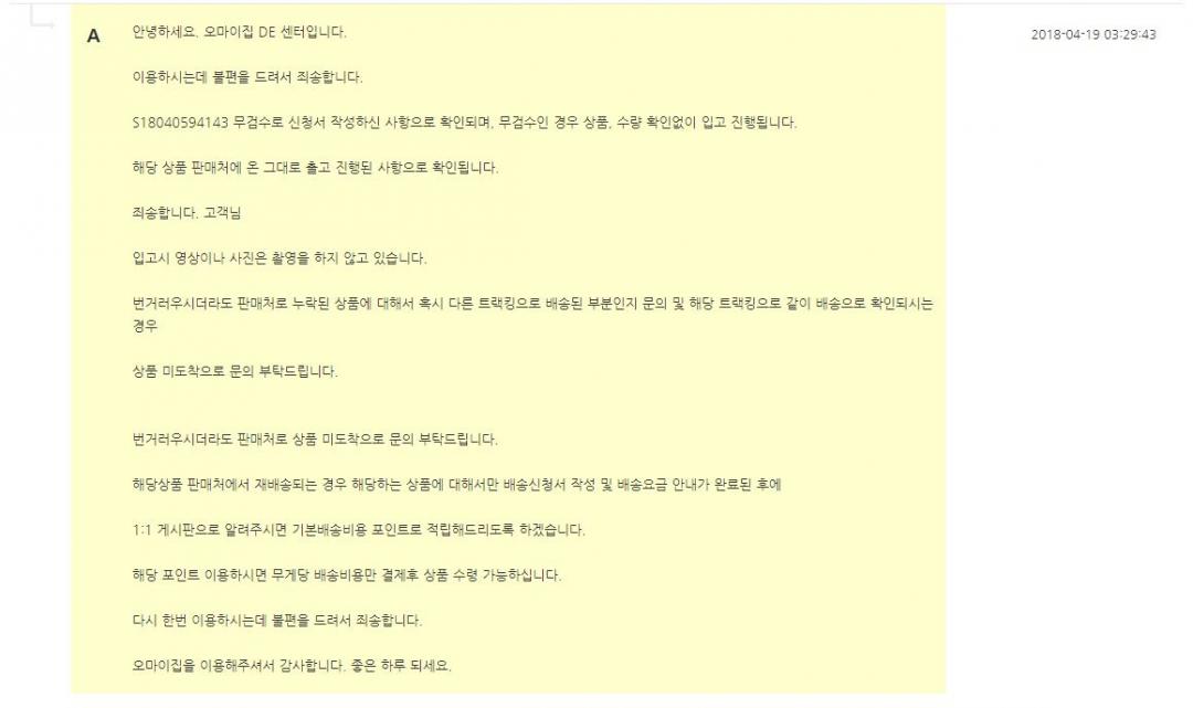 거기에 대해 일절 언급을 안 하더군요. 답변 그대로 오는대로 배송했다. 이게 다 입니다.